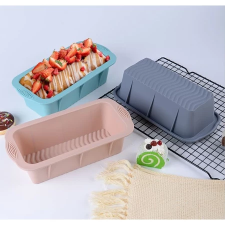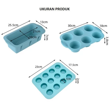 Loyang kue berbahan silikon food-grade ini hadir dalam tiga varian: loyang persegi panjang, 6 lubang dan 12 lubang.. Desain ergonomis dengan pegangan anti-slip membuat proses pemanggangan lebih aman dan nyaman.